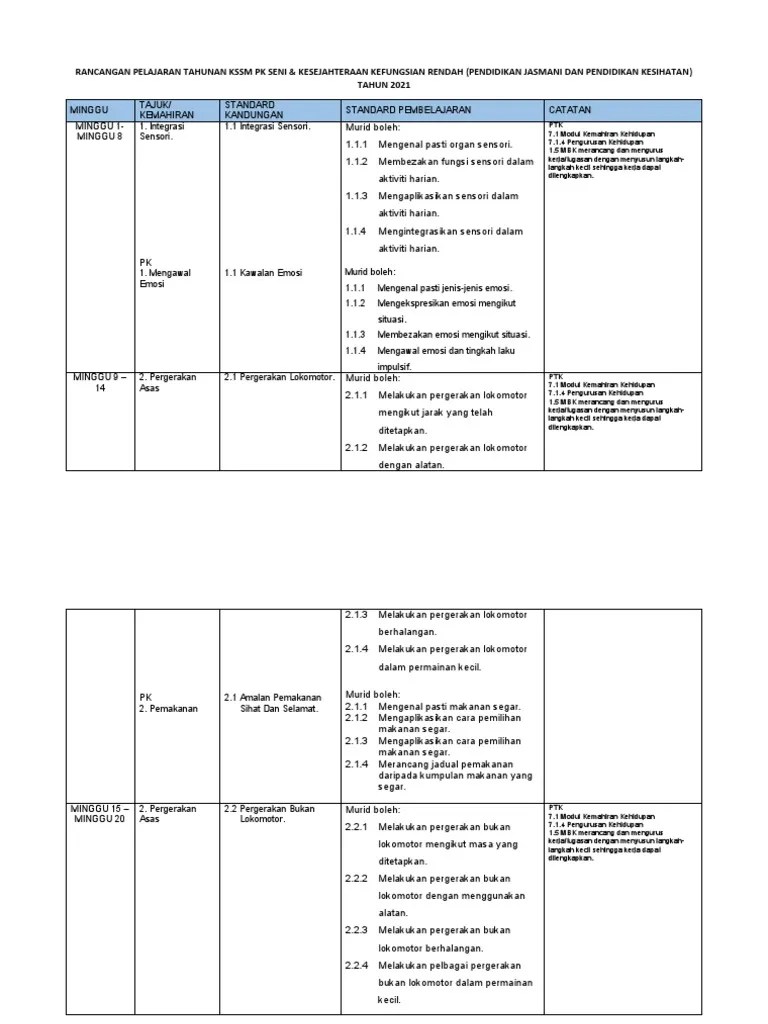 Rancangan pelajaran tahunan kssm pk seni & kesejahteraan kefungsian rendah (pendidikan jasmani dan pendidikan kesihatan).